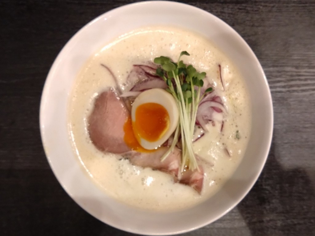 チャーシュー、味玉、カイワレ、タマネギがのっています。